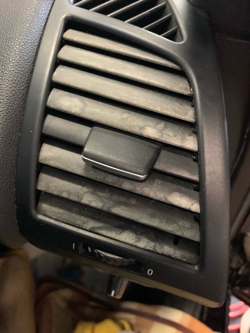 さらに、エアコン吹き出し口には経年による白化・劣化が見られ、全体的に使用感が強い印象。