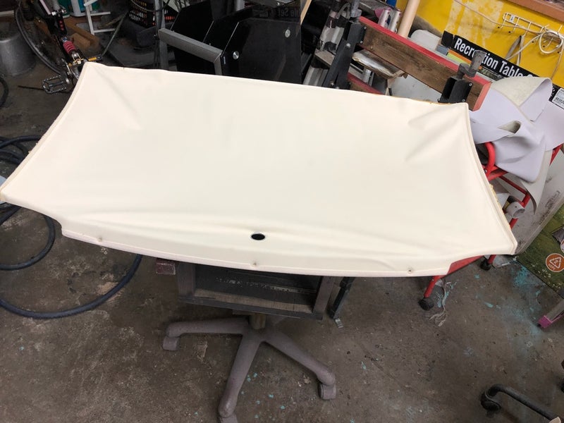 SLK専用の形状に合わせ、伸縮性と耐久性に優れた専用生地を使用して張り替え。シワや浮きが出ないよう慎重に施工を進めました。