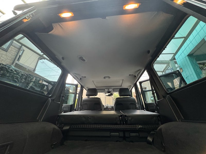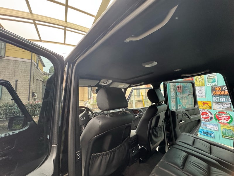 Gクラスは内装部品点数が多く、天井ライナー脱着には手数と慎重さが求められます。