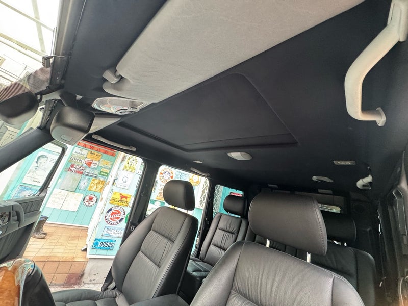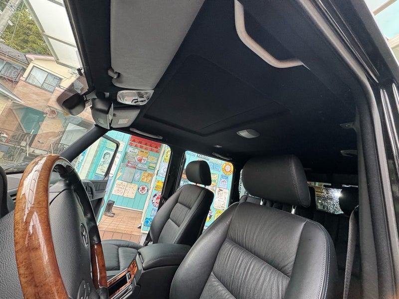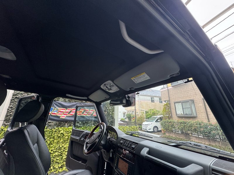 【メルセデス・ベンツ Gクラス(ゲレンデ)】天井・サンルーフボード・Aピラー張り替え|黒生地で内装リフレッシュ施工|東京都世田谷区